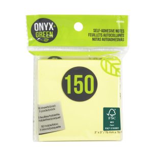 - Onyx + Green's yellow adhesive pads are made from FSC mixed paper. The package includes 3 pads of 50 sheets each = 150 sticky sheets in total! Smooth to write on, easy to stick! Size: 3" x 3" 3 pads of 50 sheets Color: Yellow Item # 5406
